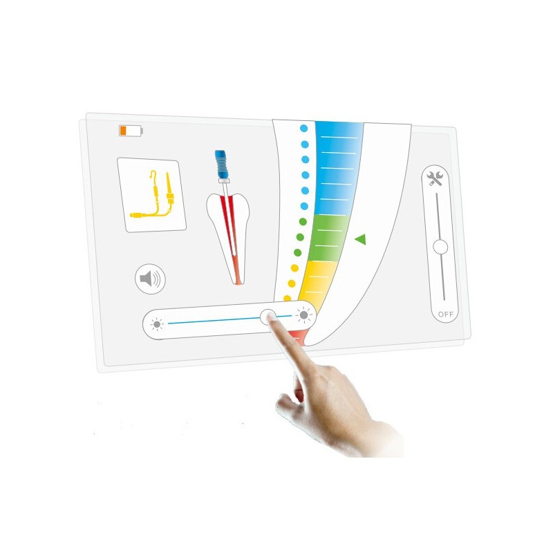 - Localizador apical con pantalla TFT-LCD táctil con ajuste luminoso.