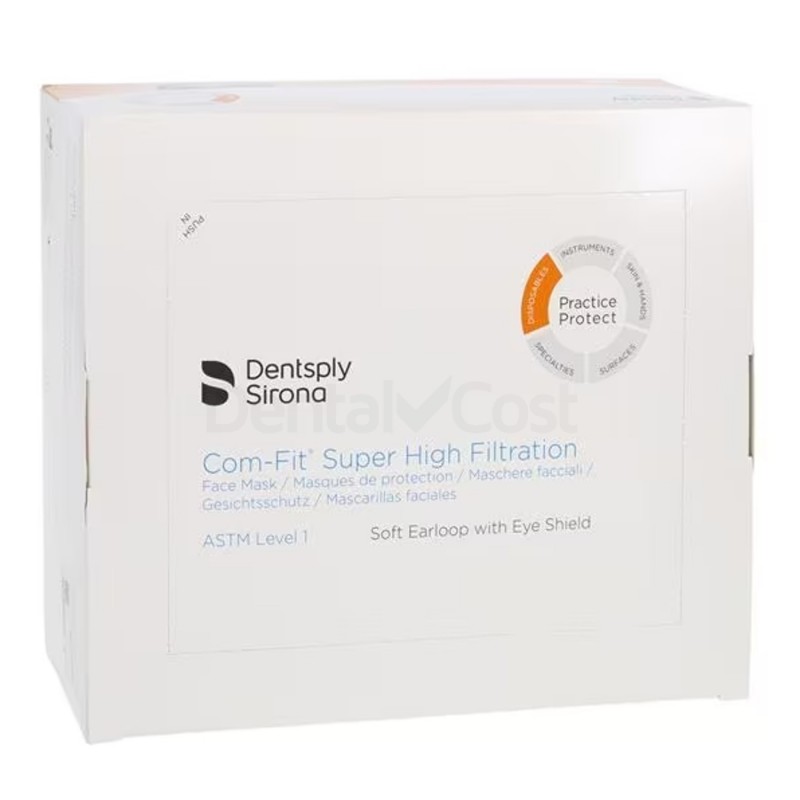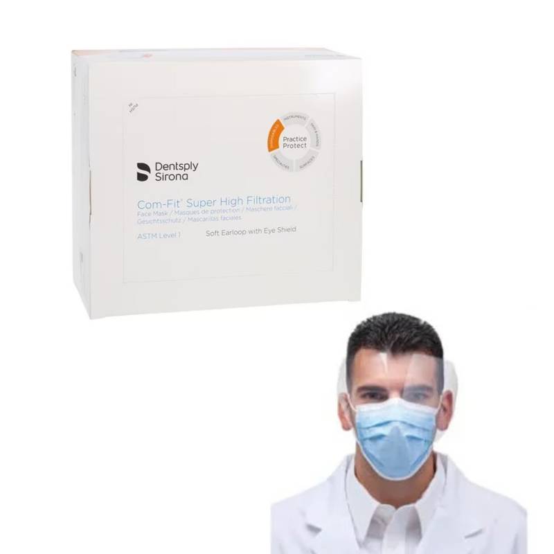 Las mascarillas Com-fit Super High Filtration de Dentsply están fabricadas con la exclusiva película DELNET que ofrece la mayor protección y resistencia a fluidos y aerosoles con una excelente capacidad de respiración.