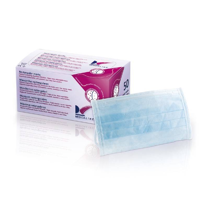 Mascarillas médicas no reutilizables rectangulares de cómoda colocación mediante elásticos confortables y suaves para evitar roces molestos.
