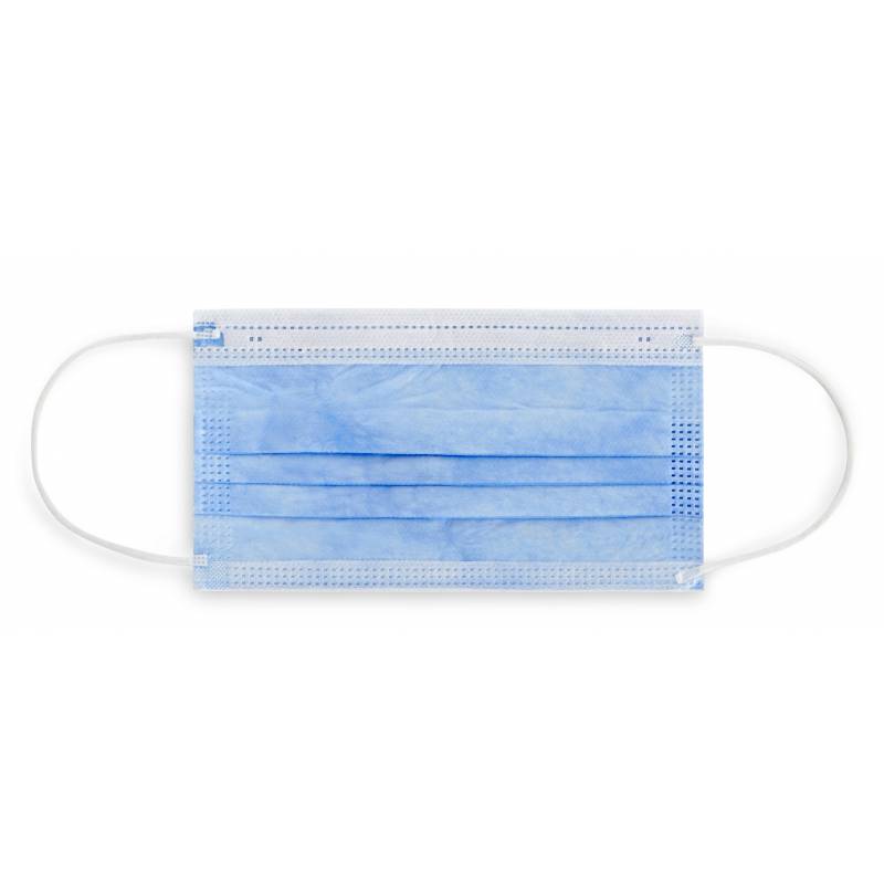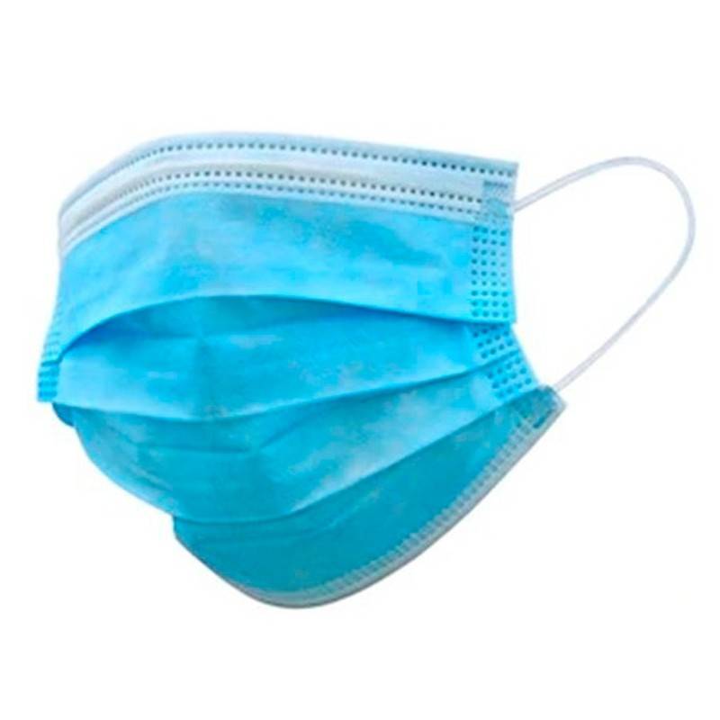 Mascarilla quirúrgica desechable no estéril, disponible en color azul.