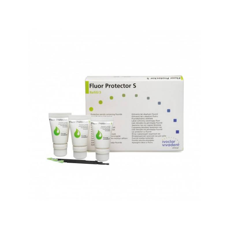 El innovador sistema de Fluor Protector S barniz, caracterizado por una fuente de fluoruro homogéneamente disuelta, asegura una actuación inmediata del fluoruro. La dosis completa de fluoruro que contiene Fluor Protector S se aplica en muy poco tiempo. Como resultado, el esmalte dental es tratado directamente con fluoruro.