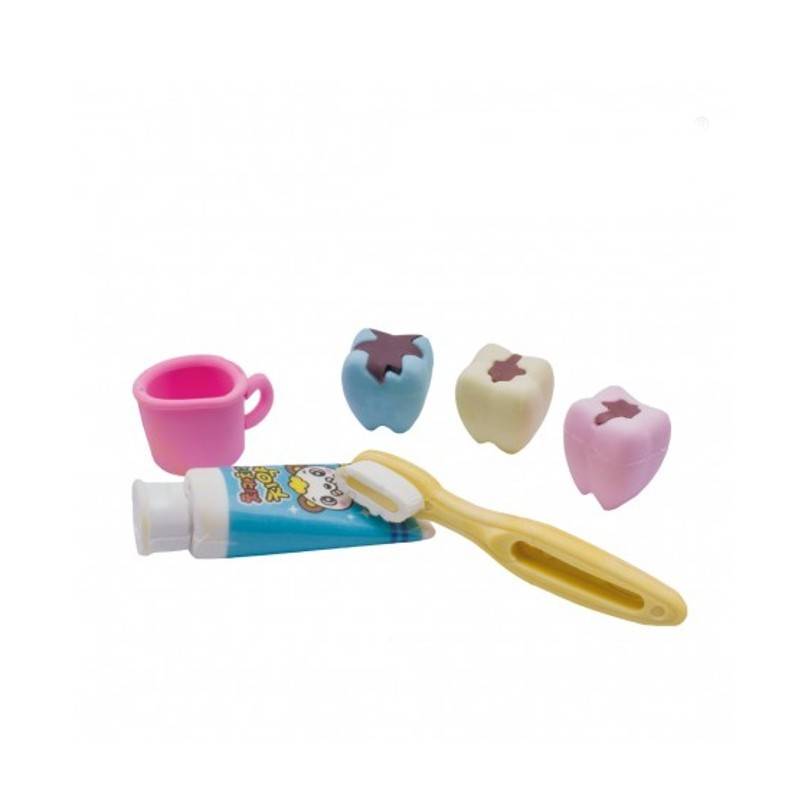 - Gomas de borrar con formas de muelas, cepillos y pastas de dientes.