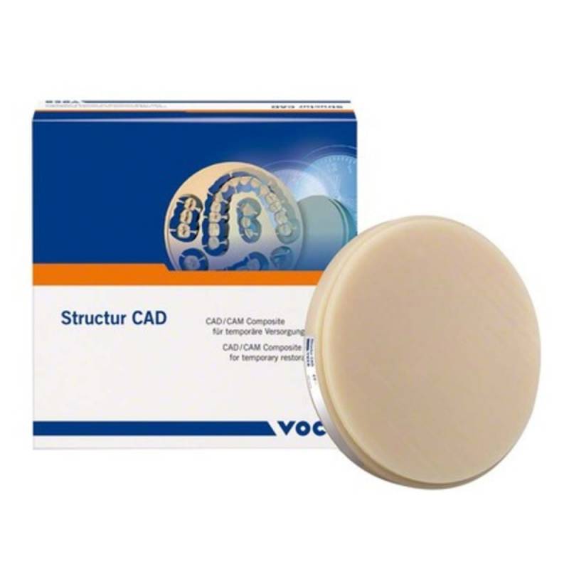 Structur CAD Disc de Voco es un disco de composite CAD/CAM que se utiliza en la rápida y eficiente elaboración de restauraciones provisionales a medida con la técnica de tallado de CAD/CAM.