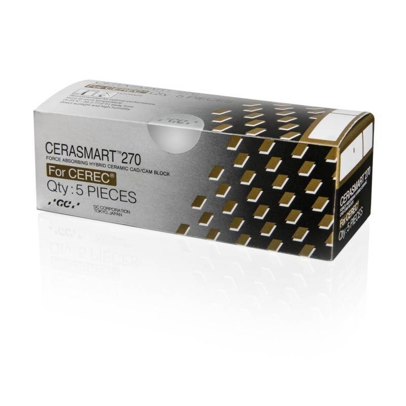Cerasmart270 (Cerec) de GC es un bloque CAD/CAM de cerámica híbrida de alta resistencia que combina flexibilidad y precisión. Al poseer una alta tasa de relleno gracias a su tecnología FSC, consigue unas propiedades fisicas y estéticas superiores.