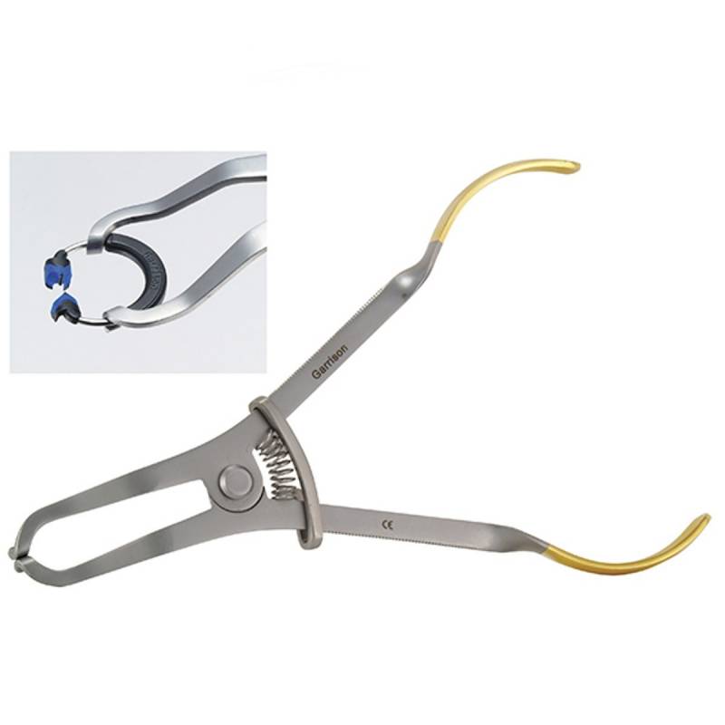 El kit también incluye un fórceps para la colocación de anillos diseñado de tal modo que se adapta a todos los anillos Garrison.