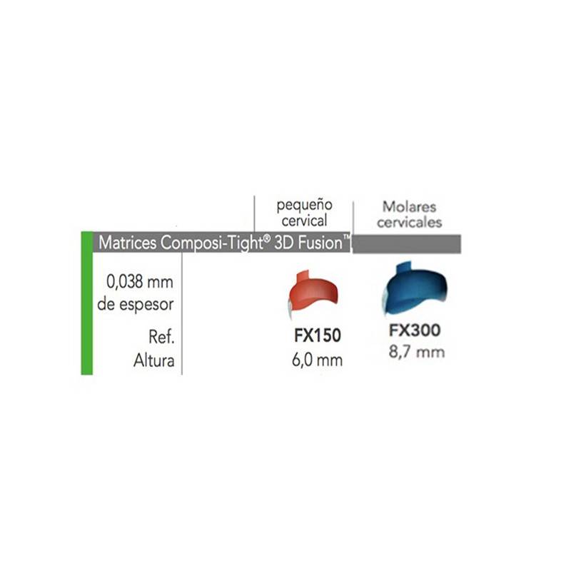 Composi-Tight® 3D Fusion Full Curve de Garrison son matrices seccionales que se adaptan a cualquier forma de dientes. Diseñadas para solucionar los desafios más difíciles incluido los de clase II.