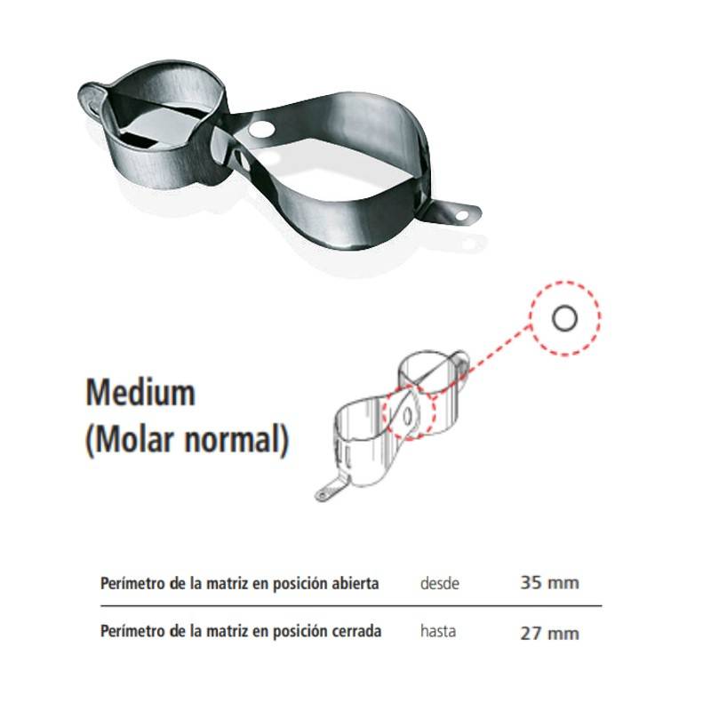 Para una mejor adaptación marginal a cualquier dientes posterior, ya sea premolar o molar, está disponible en 3 tamaños: small, medium y large .