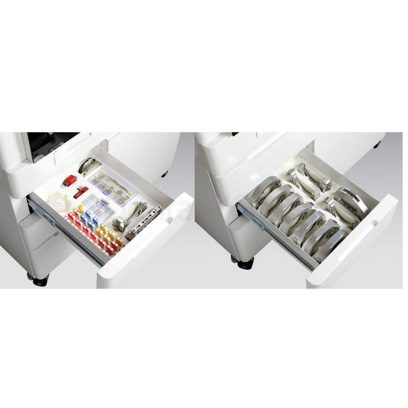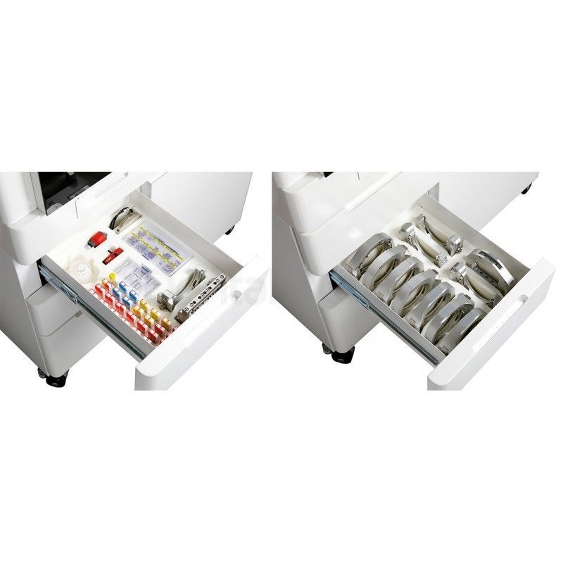 Un espacio de almacenamiento para 12 cartuchos, 12 discos, 72 Blanks prefresadas, 72 bloques CAD.