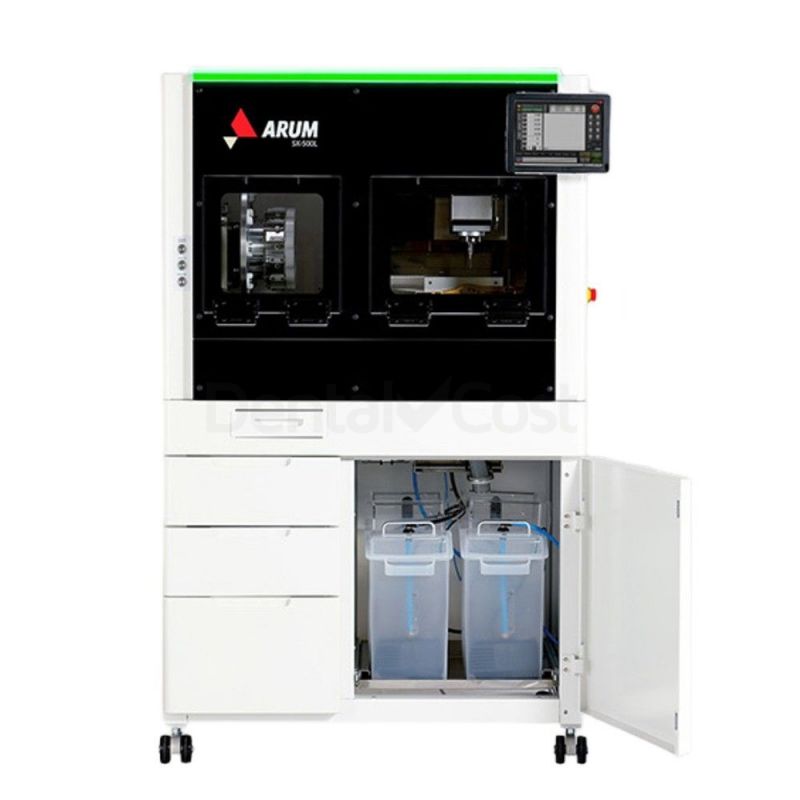La fresadora dental Arum 5X-500L es una fresadora CAD/CAM profesional de 5 ejes simultáneos diseñada para mecanizado en húmedo y seco. Fábrica inteligente 24h con cargador automático de 12 cartuchos.