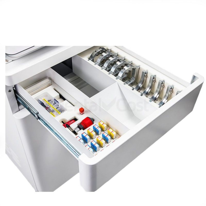 La fresadora dental Arum 5X-300Pro es un sistema All-in-One: fresadora CAD/CAM con compresor integrado.