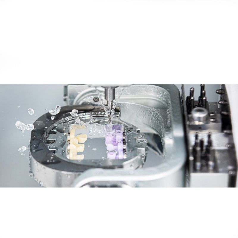 Se trata de una fresadora para laboratorio dental protésico de 5 ejes simultáneos diseñada para mecanizado en húmedo y seco, tanto de discos como de bloques.