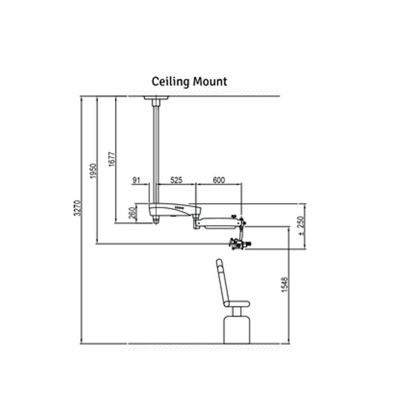 Brazo de suspensión: 1125 mm con movimiento vertical: 600 mm.