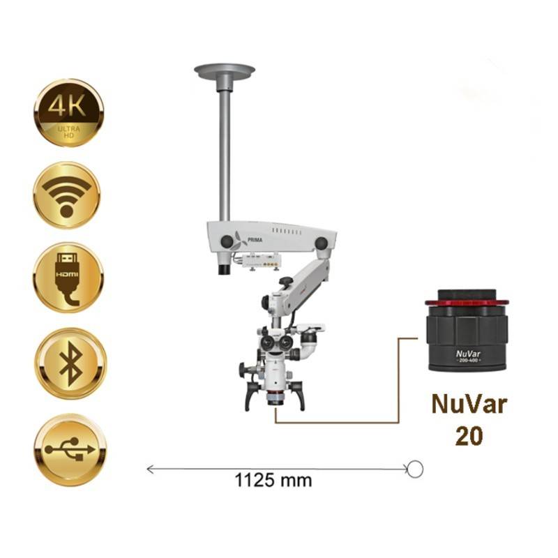 El objetivo NuVar 20 permite al profesional seleccionar distancias de trabajo variables en función de los requesitos del procedimiento. Lo que hace que sea un microscopio quirúrgico Prima DNT Premium versátil y de uso intuitivo.