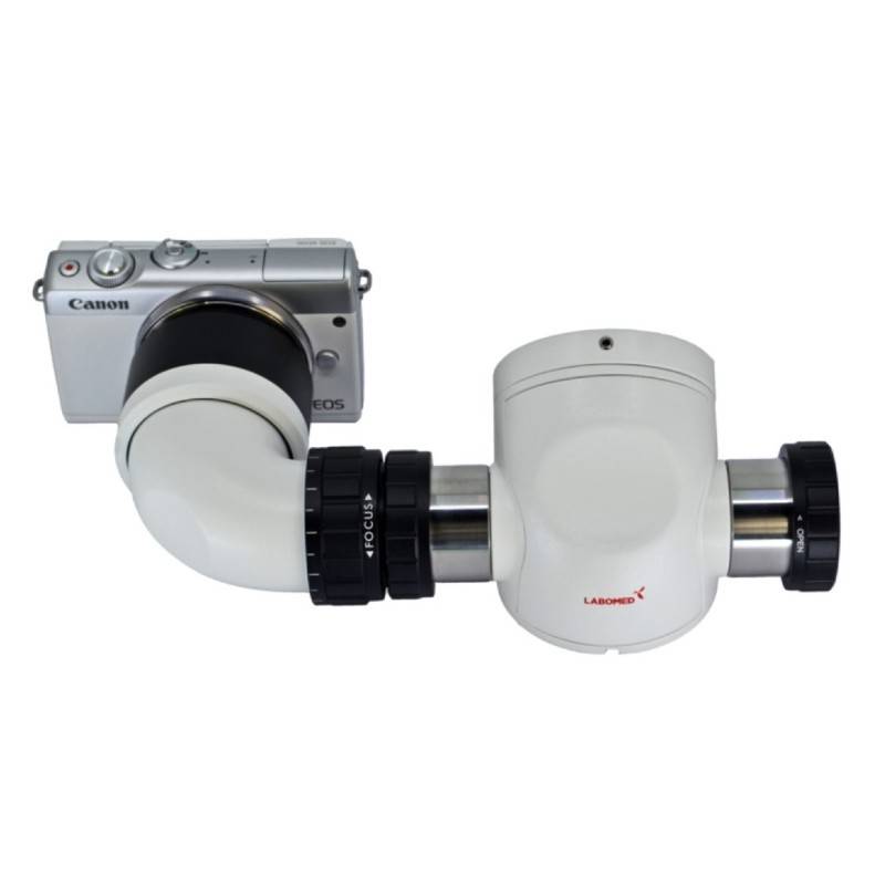 Con revólver de objetivos de 5 pasos con aumento de 0.4x, 0.6x, 1.0x, 1.6xy 2.5x y cabezal ergo, tubos binoculares ergonómicos con moviemiento de 0º - 210º y lentes objetivo con f = 170 mm. Además, WF 10X / 18 mm con protectores oculares plegables, ajuste de dioptrías ± 5 mm con bloqueo de dioptrías.