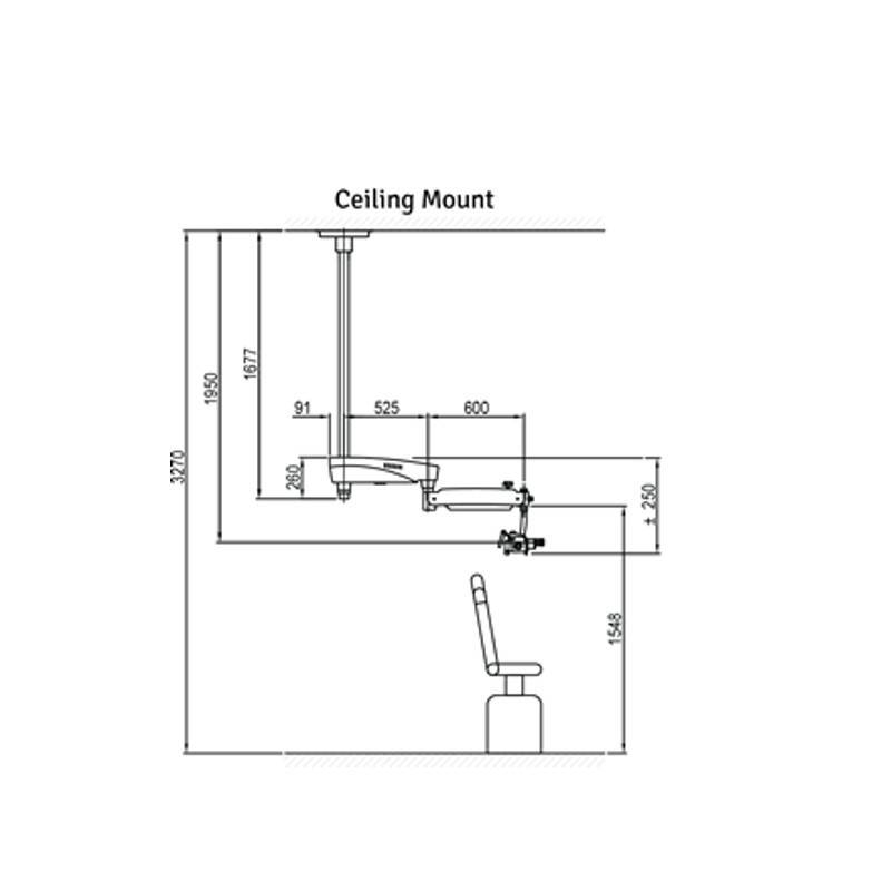 Brazo de suspensión: 1125 mm con movimiento vertical: 600 mm.