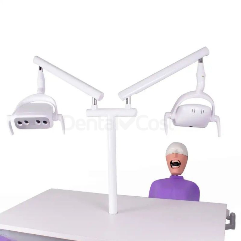 El simulador odontológico Bader integra doble lámpara operatoria LED con brazo articulado que permite iluminar cualquier zona operatoria sin interferencias.