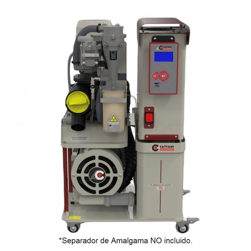 Turbo Smart TS es un sistema de aspiración Cattani de anillo húmedo indicado para el funcionamiento simultáneo de hasta 3 sillones dentales, dependiendo del vacío deseado en la cánula.