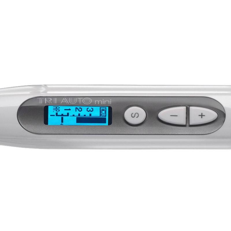 Tri Auto Mini Plus posee una pantalla LCD que gracias a su color de fondo las escalas, cifras y letras ofrecen una lectura sencilla. Apta para zurdos, ya que la pantalla se puede invertir. Con indicador visual de la posición de la lima en el display.
