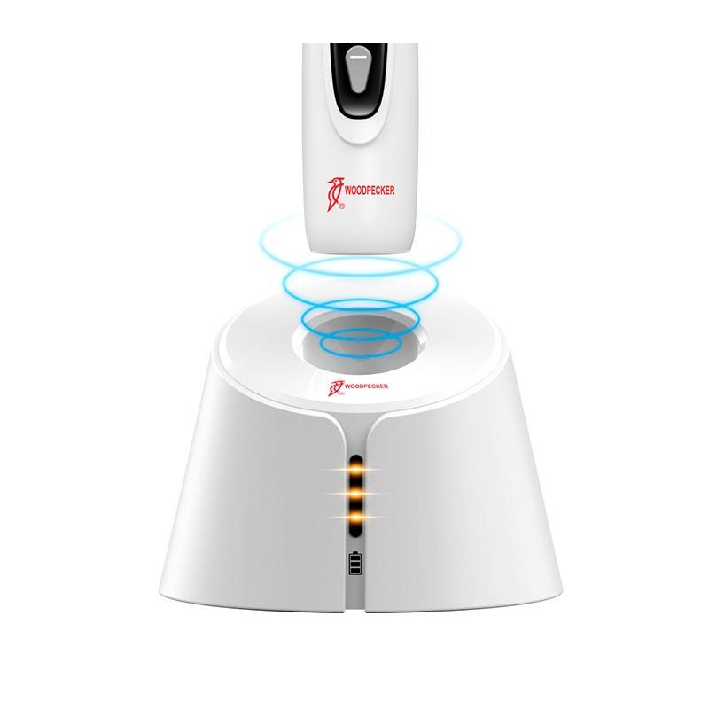 Endo Smart de Woodpecker posee la batería incorporada, la pieza de mano carga al ser colocada en la base de carga.