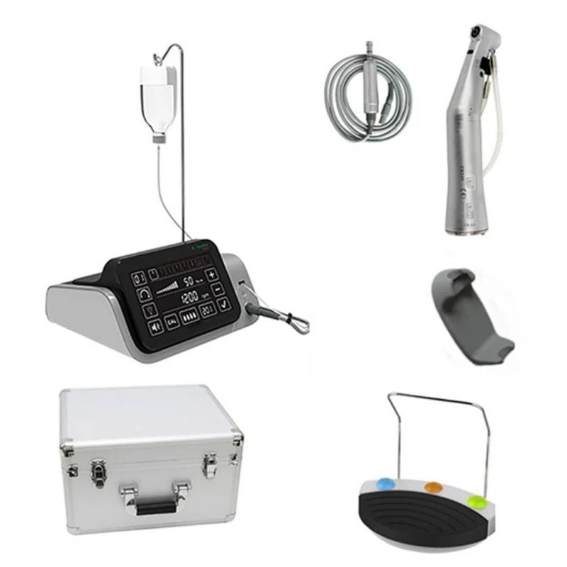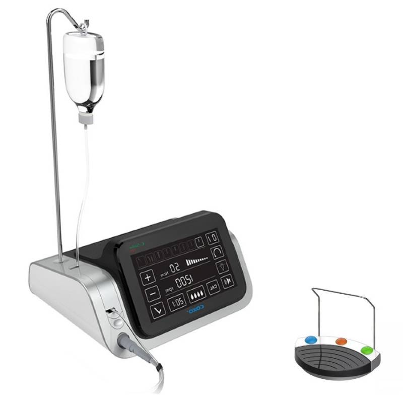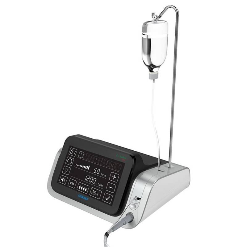 El motor de implantología C Sailor Pro de Coxo cuenta con contra ángulo 20:1 con luz LED para implantología, irrigación externa y cambio de fresa por botón.
