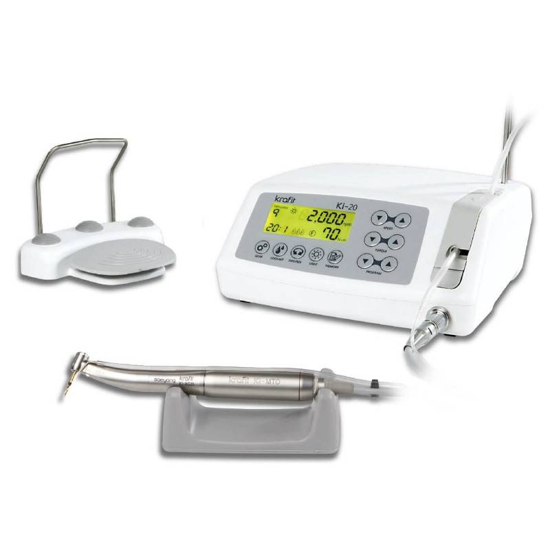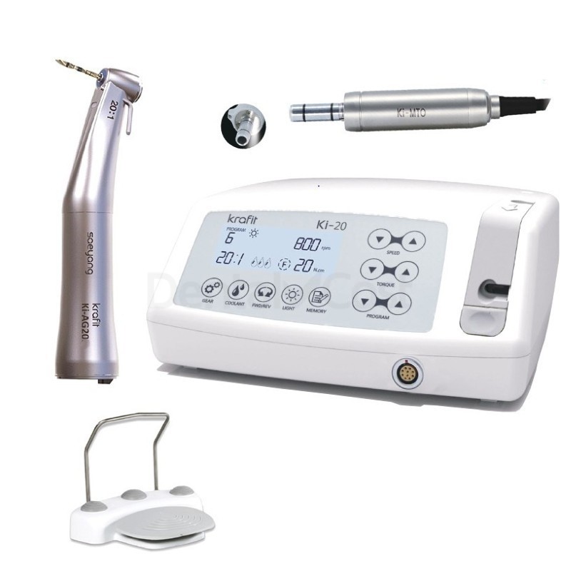Motor de Implantología Ki-20 de Krafit de fabricación Coreana con luz incorporada, reúne un máximo de prestaciones aún siendo una herramienta de trabajo simplificada al extremo.