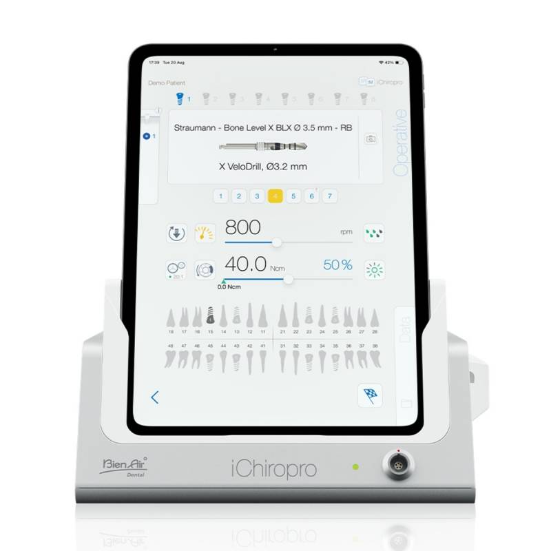 Ichiropro de Bien Air es un sistema de implantología y cirugía oral de alto rendimiento de gran facilidad de uso. Un asistente único y revolucionario controlado mediante una aplicación para iPad y equipado con instrumentos de gran rendimiento.
