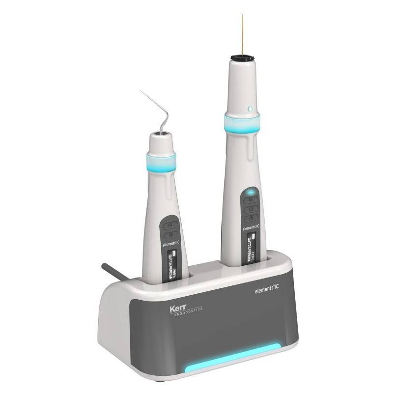 Elements IC de Kerr es un sistema de obturación inalámbrico que combina una fuente de calor para obturación apical (Downpack) y un extrusor para obturación coronal completa (Backfill).