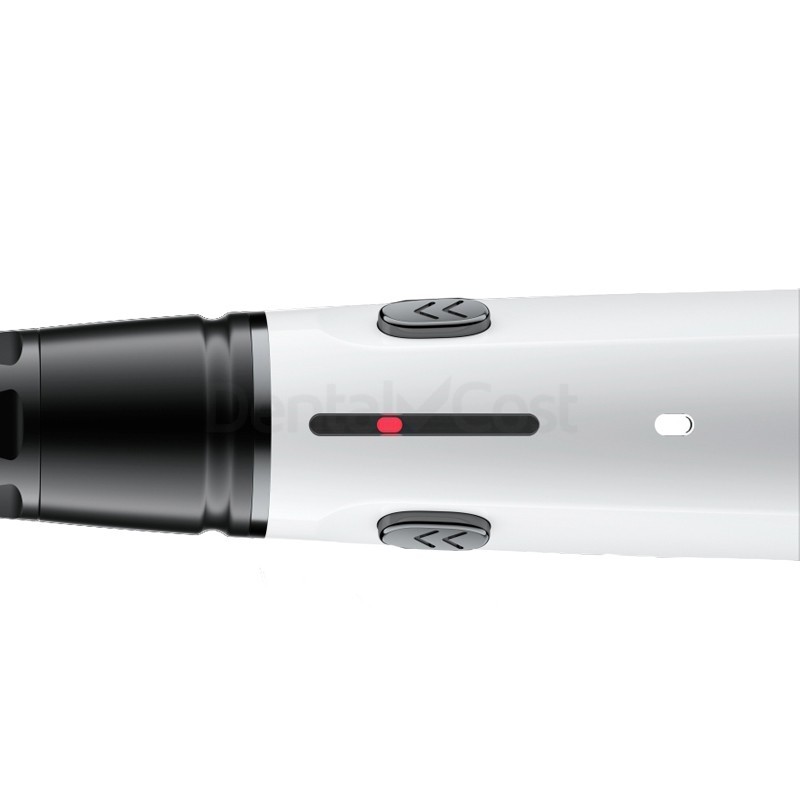 Fi-E dispone de doble botón y tres velocidades de inyección (slow, medium y fast), e indicador luminoso de cantidad restante de gutapercha.