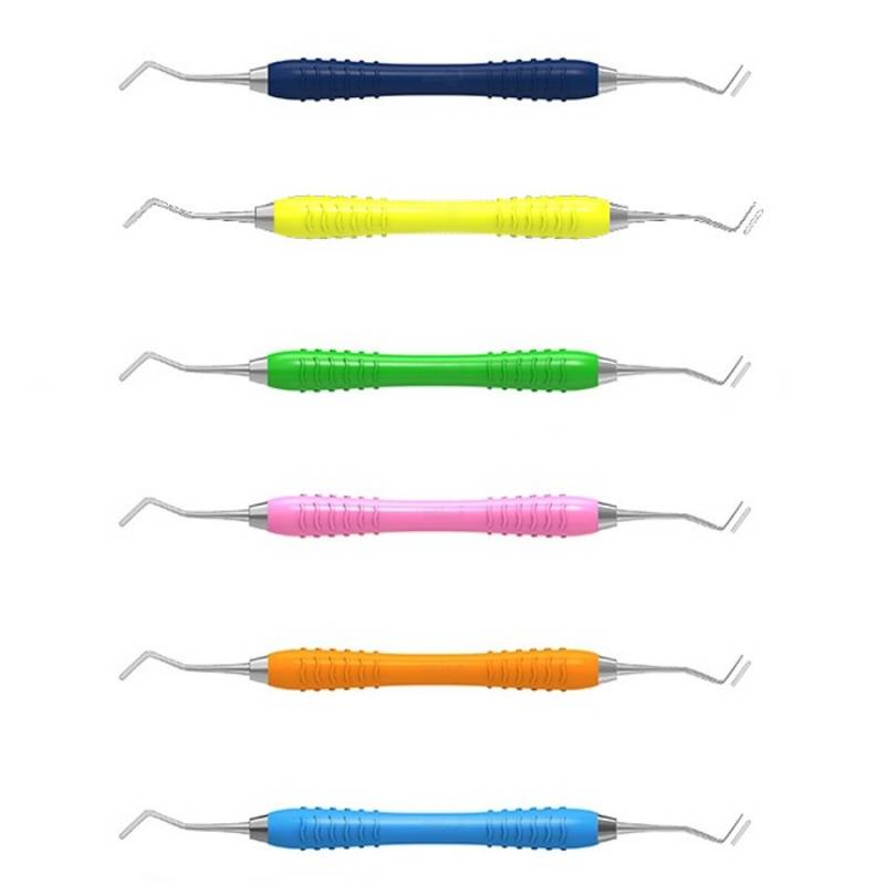 Mango de silicona termoestable y antideslizante de núcleo de acero inoxidable muy ligero y sellado antibacteriano. Se presentan codificados por color para permitir una fácil identificación entre los instrumentos.