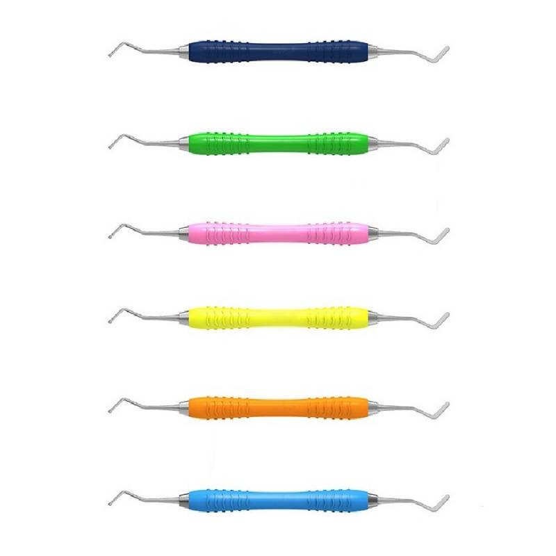 Los mangos se presentan codificados por color para permitir una fácil identificación entre los instrumentos.