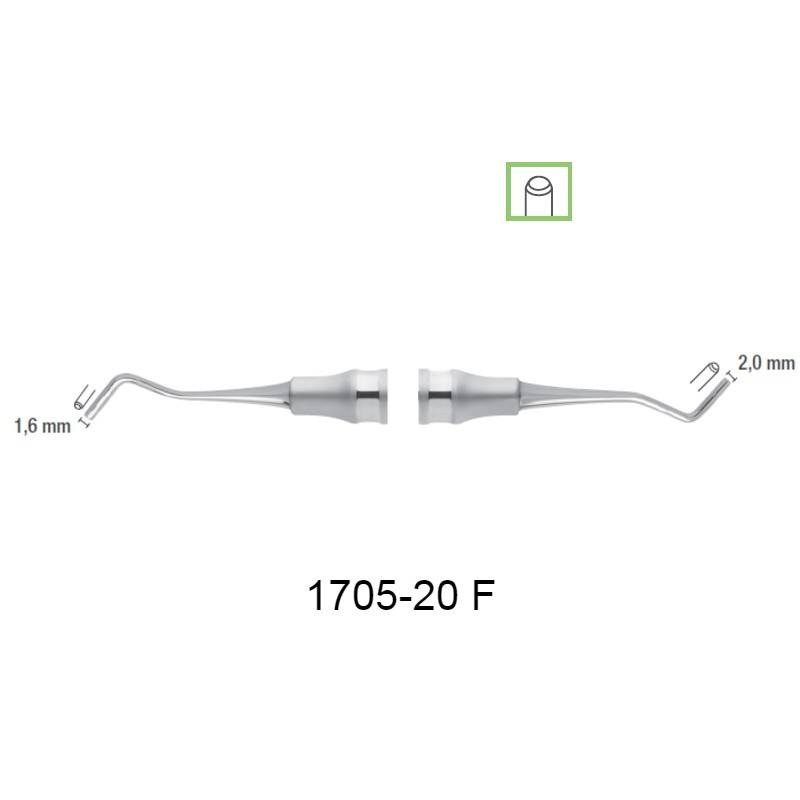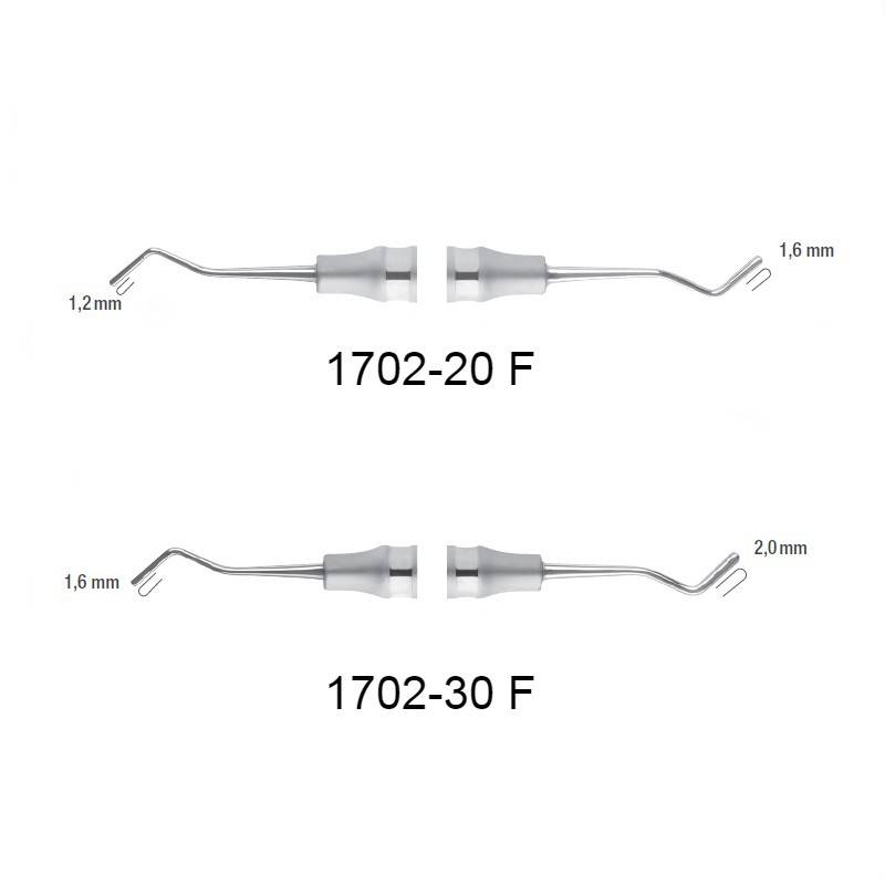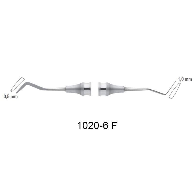 - 1020-6 F - Posicionador gingival - 17,1 cm - 0,5 / 1,0 mm - Mango SL. - Instrumentos para el posicionamiento atraumático del cordón gingival.