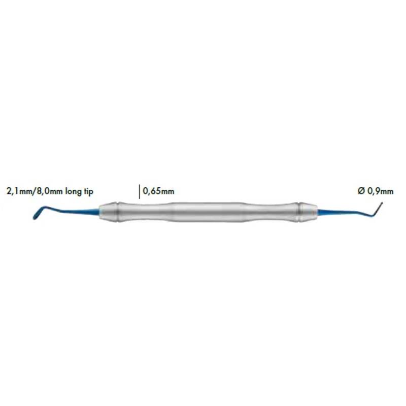 Pertenece a la gama LiquidSteel, instrumentos dentales fabricados con acero inoxidable de alta densidad. Con un contenido de cromo del 14% aproximadamente y mediante la técnica de endurecimiento NOXI, que logra optimizar la estructura del acero, aumentando la capacidad de corte, la vida útil y la resistencia a la oxidación.