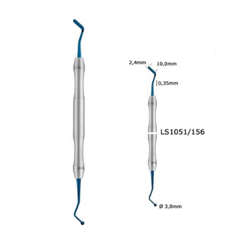 La forma y medida su doble parte activa, espátula y bola, permiten la obturación, prensado y condensación rápida de los composites.