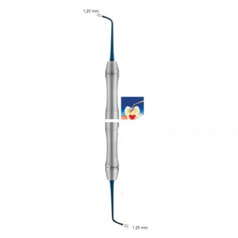 Además, pertenece a la gama LiquidSteel, instrumentos dentales fabricados con acero inoxidable de alta densidad. Con un contenido de cromo del 14% aproximadamente y mediante la técnica de endurecimiento NOXI, que logra optimizar la estructura del acero, aumentando la capacidad de corte, la vida útil y la resistencia a la oxidación.