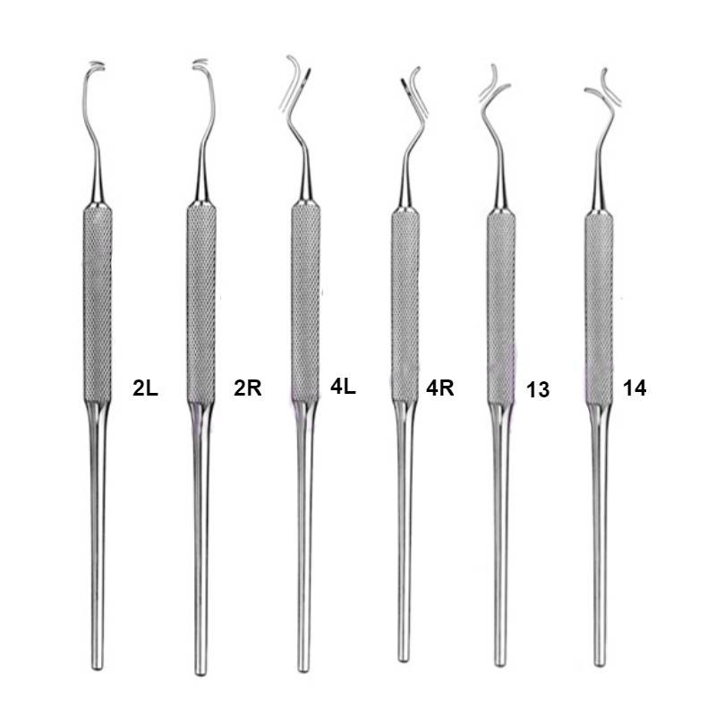 - Cureta Küretten para eliminar cantidades moderadas de cálculos de las superficies de los dientes.