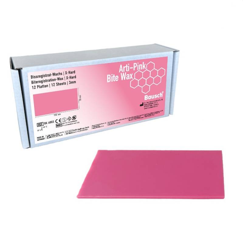 Arti-Pink Bite Cera Extra Dura 3mm Registro Mordida Rectangular 12 piezas Bausch
