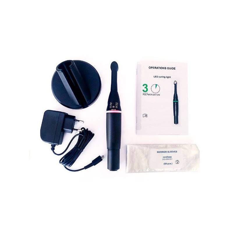 Lámpara de fotocurado LED inalámbrica extra-rápida con modo especial de ortodoncia que permite el curado en sólo 3 segundos, y que además incorpora un modo para ortodoncia en modo de 36 disparos de 3 segundos.