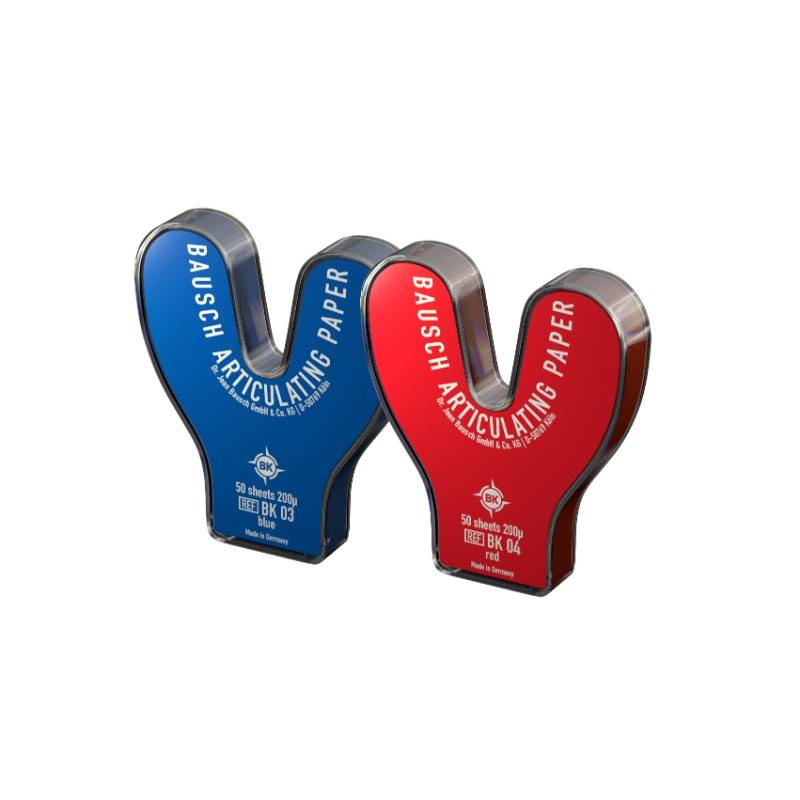 Papel de articular BK 03 azul o BK 04 rojo con forma de herradura.