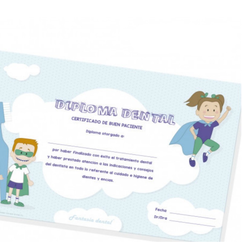 - Diploma de buen paciente de los personajes de Fantasía Dental.