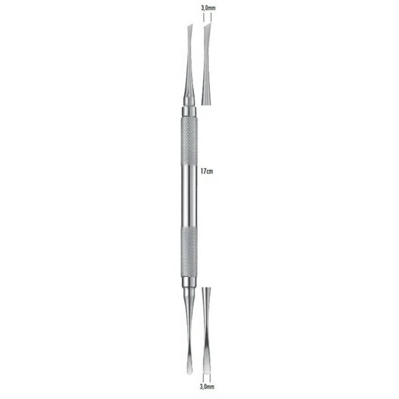 - Doble parte activa: redondeada y cortante, ambas 3,0mm ancho.