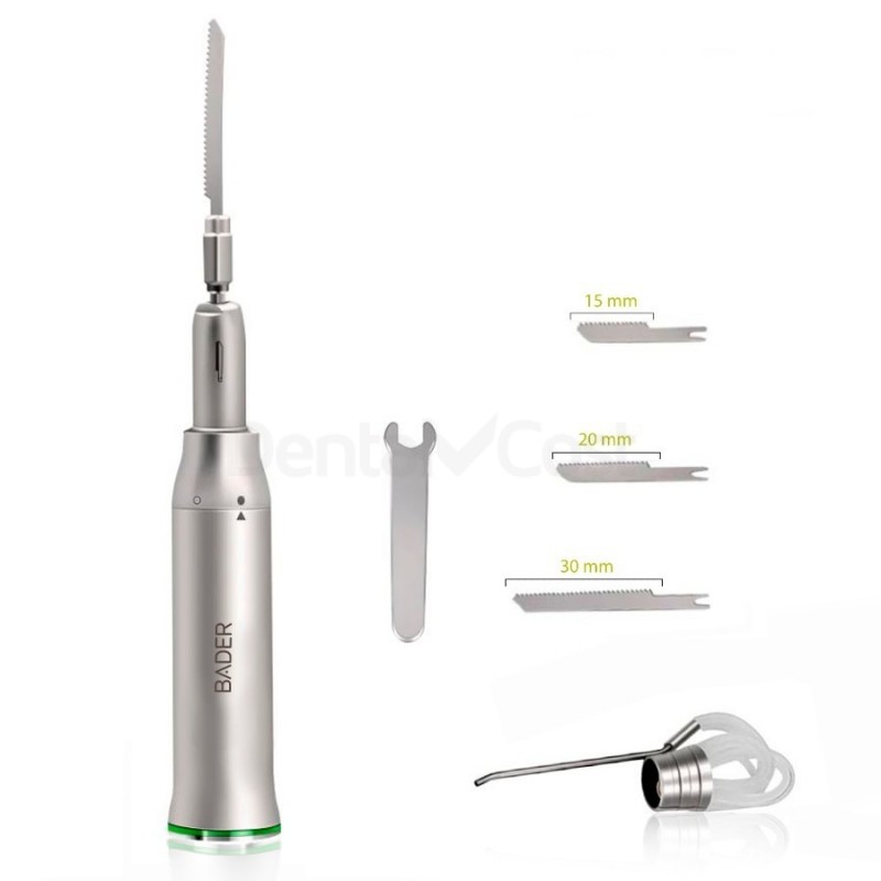 La pieza de mano maxilo sierra Bader Titanium S2 está construida con materiales de primera calidad, acero inoxidable, sinónimo de durabilidad y fiabilidad.