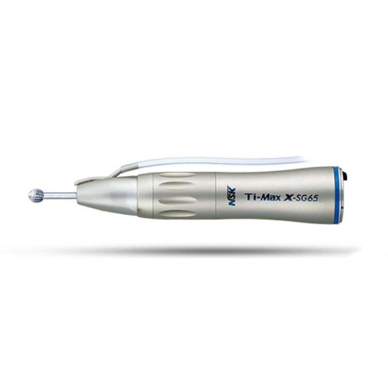 La contraángulo recto X SG65 Ti-MAX de NSK, sin luz, posee un sólido y ligero cuerpo de titanio con recubrimiento Duracoat a prueba de arañazos.