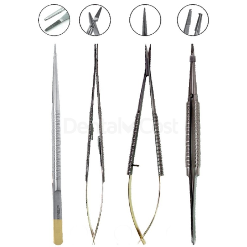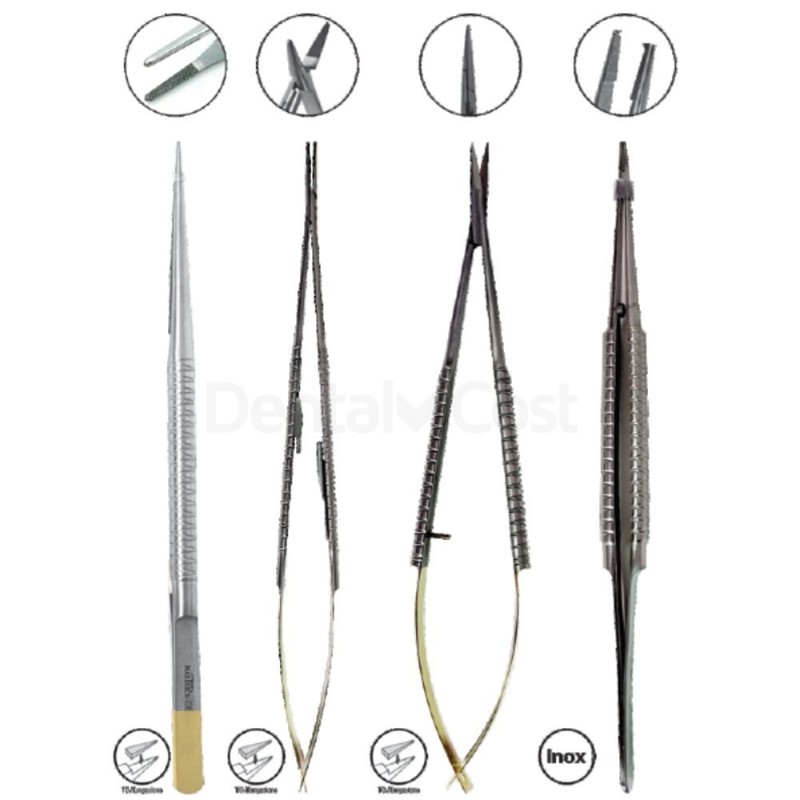 - Instrumental de Microcirugía en acero inox con refuerzo de TC e inox.