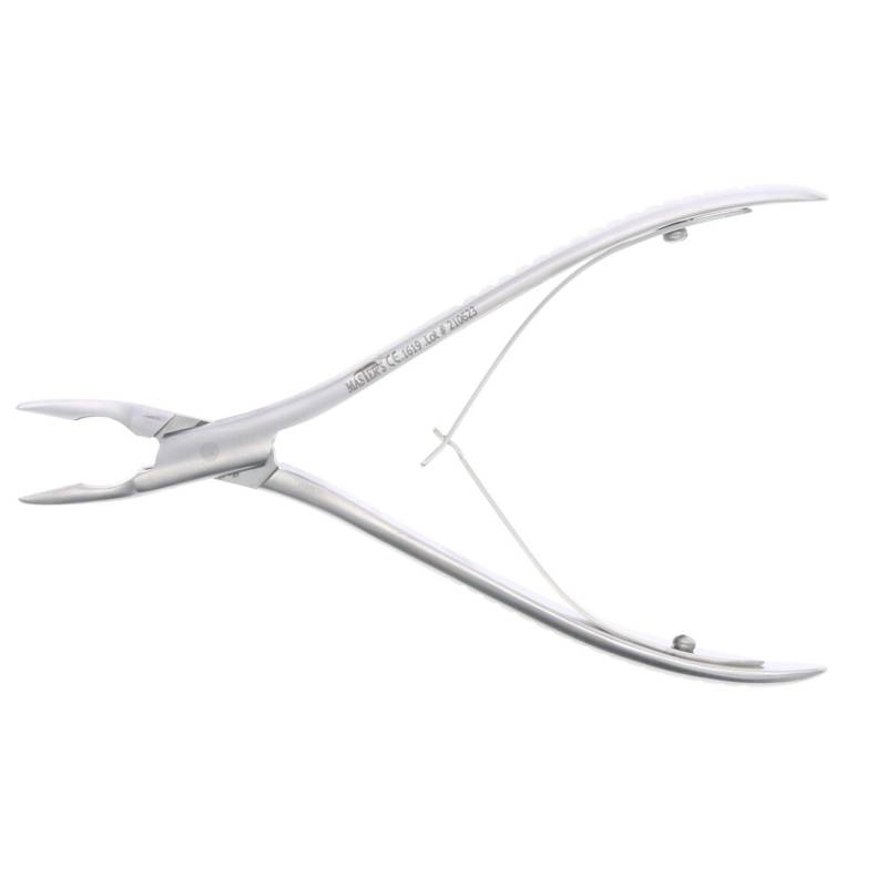 - Pinza gubia para extirpar espículas, eliminar fragmentos óseos, etc.
