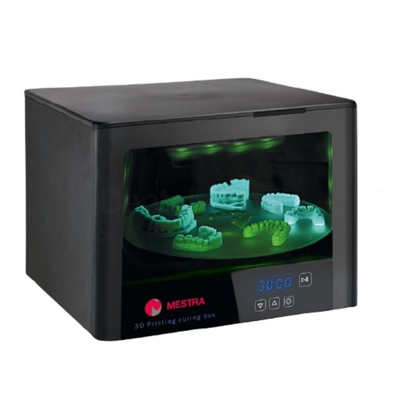 - Fotopolimerizar la mayoría de los materiales del sector dental, incluidos modelos creados con impresoras 3D.