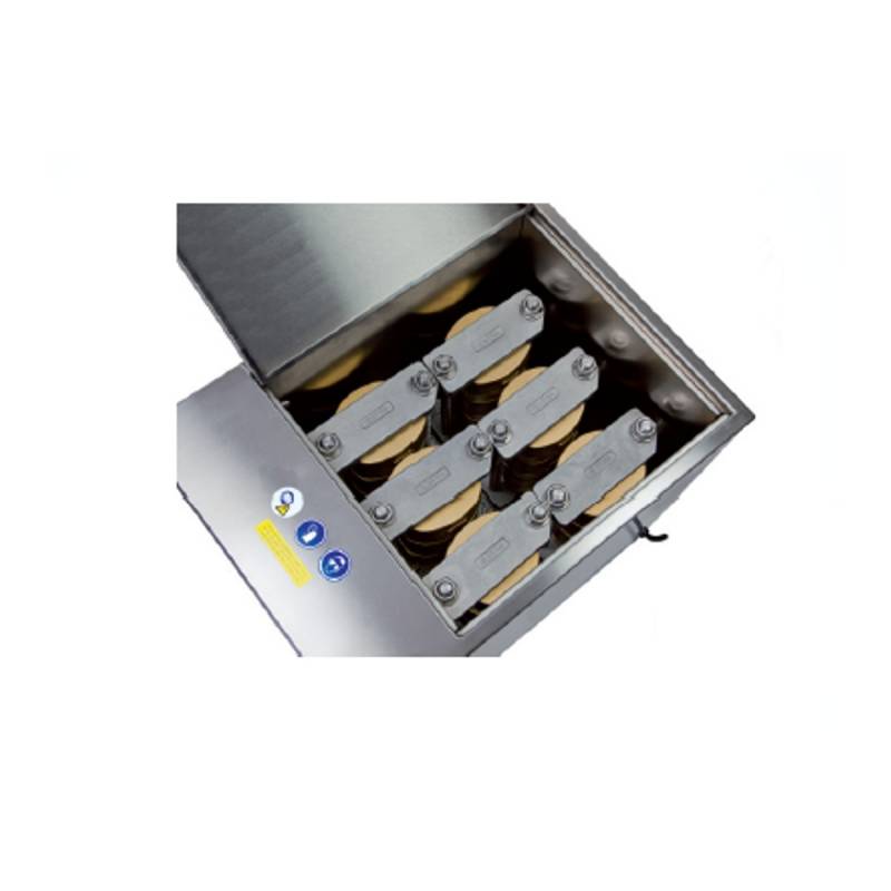 Diseñada y fabricada en España por Mestra, la R-080407 Poli Magic 18 es una polimerizadora construida con chasis en acero inoxidable que permite albergar hasta 18 muflas con bridas.