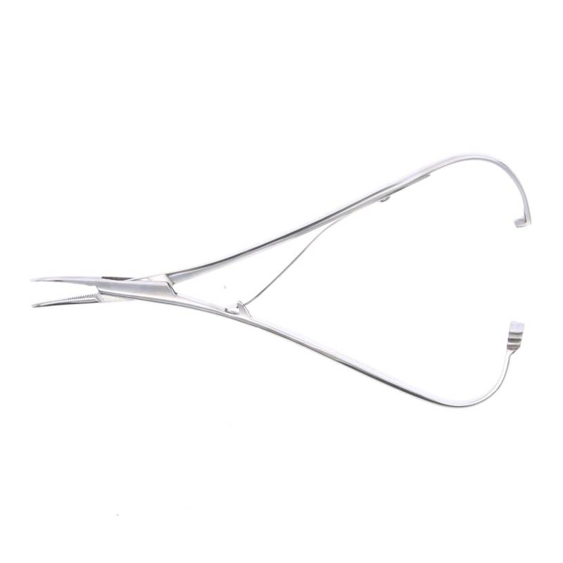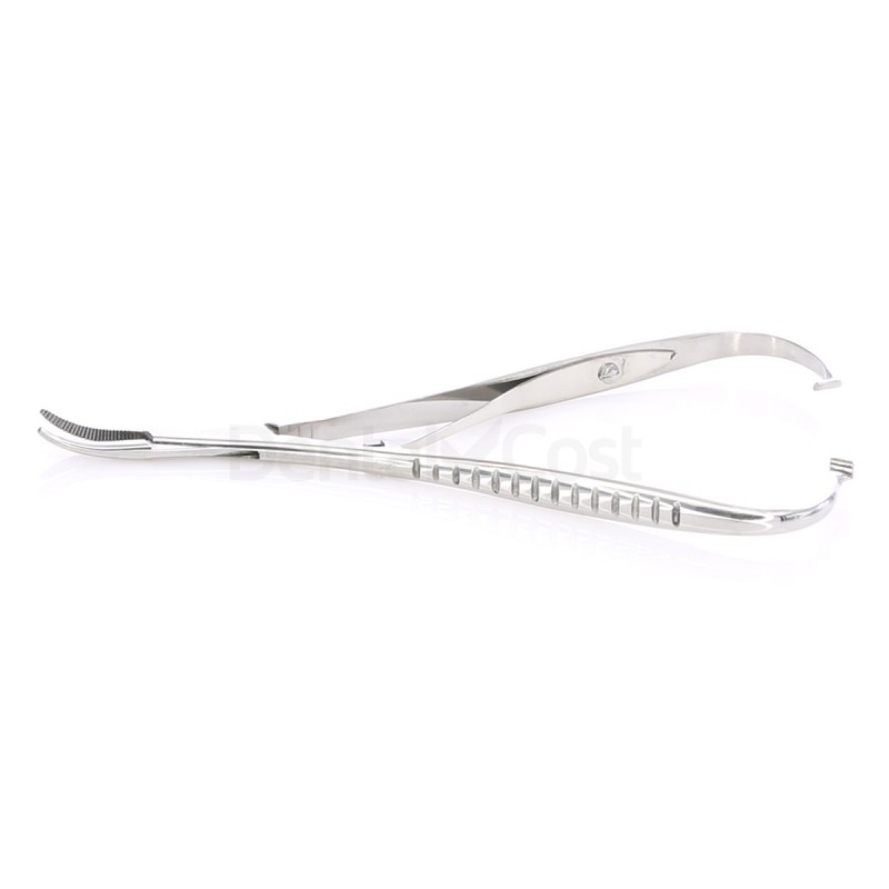 - Pinza/porta Agujas curvada con cierre de tipo cremallera.