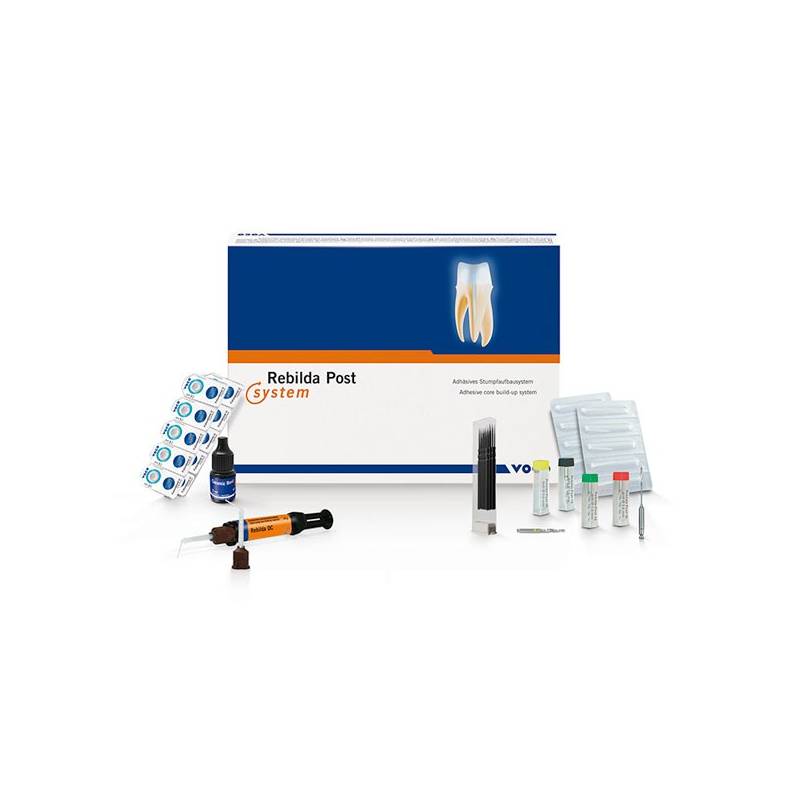 Rebilda Post System de Voco es un set completo para el tratamiento postendodóntico. Se trata de un poste radicular de composite reforzado con fibra de vidrio, un complemento excelente al material de reconstrucción de muñones y fijación Rebilda DC.