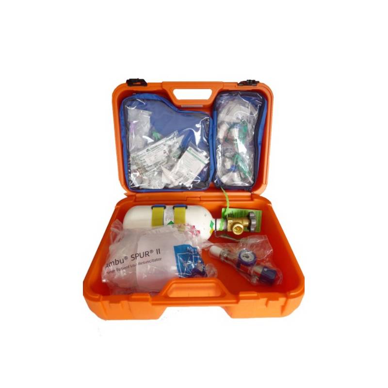 Maletín Naranja de Oxigenoterapia, de plástico inyectado en color naranja, con acabado mate y antideslizante. Medidas 47x36x16 cm. Muy rígido y resistente al impacto. Se trata de un completo equipo de emergencia con el material necesario para tratar urgencias respiratorias, ideal para Gabinete Dental.