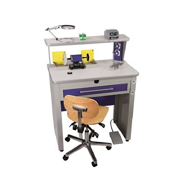La mesa de repaso R-100301 K2 de Mestra, diseñada y fabricada en España está indicada para un puesto de trabajo en laboratorio dental y cuenta con:
